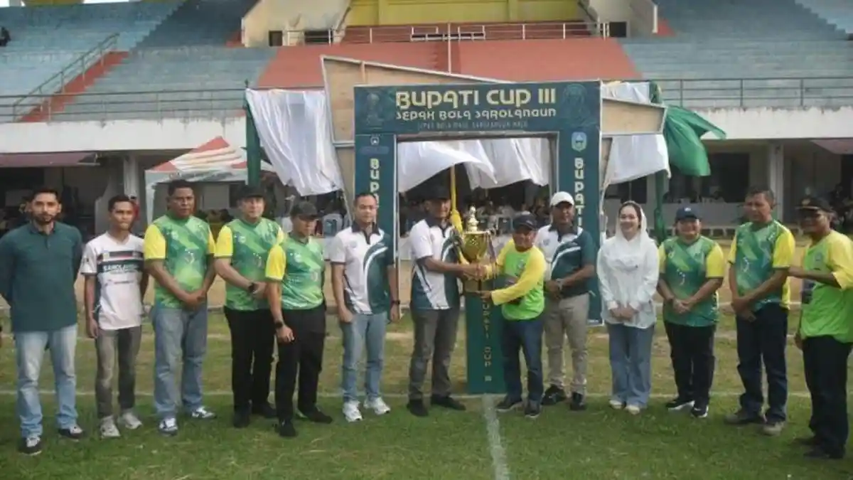 SENARAINEWS.COM – Turnamen sepak bola bergengsi antar kecamatan di Kabupaten Sarolangun kembali digelar. Ajang Bupati Cup III Tahun 2025 resmi dibuka oleh Bupati Sarolangun H. Hurmin, Minggu (2/11/2025) sore di Stadion Glora Sport Center Sarolangun.